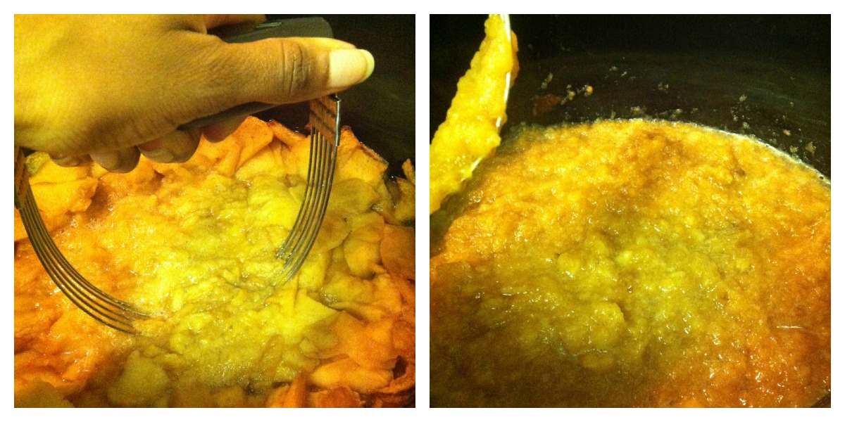 After the 4 hours in the slow cooker, you can smash the apples with a potato masher or pastry cutter (my favorite!). Even a fork will do. Don’t put it in the blender. That’s just silly. Now get out there and make slow cooker applesauce…the lazy mom way!
