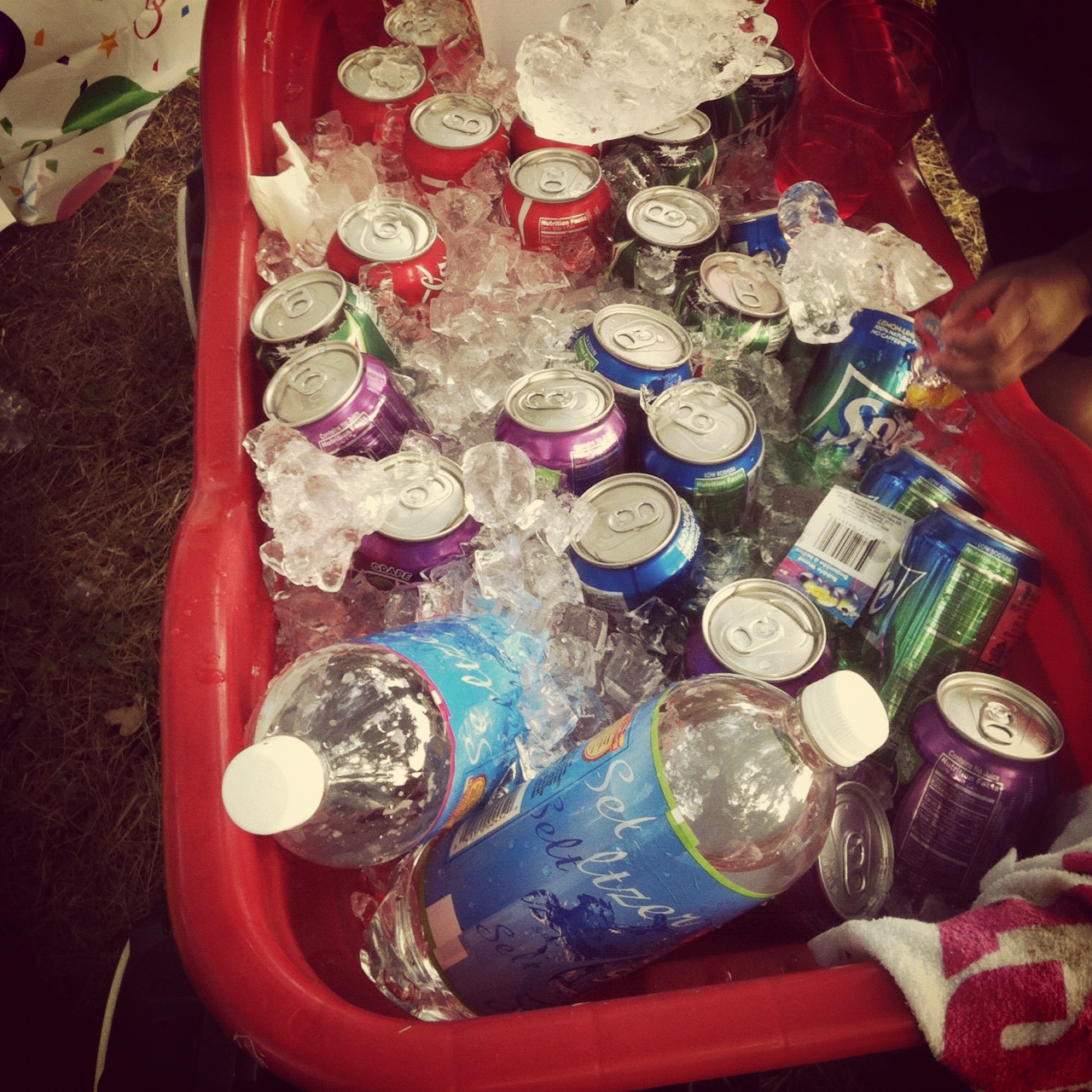There were so many other cute things that we did, but this one got the most “great idea!” responses from our guests and a few of you on my Instagram account. We bought the kids’ wagon from home and housed the non-alcoholic drinks here. It did a wonderful job of keeping the sodas, water, seltzer, and juice boxes nice and cold on that warm day. I also sprinkled some salt on the ice, which lowers the temperature of the ice almost immediately.