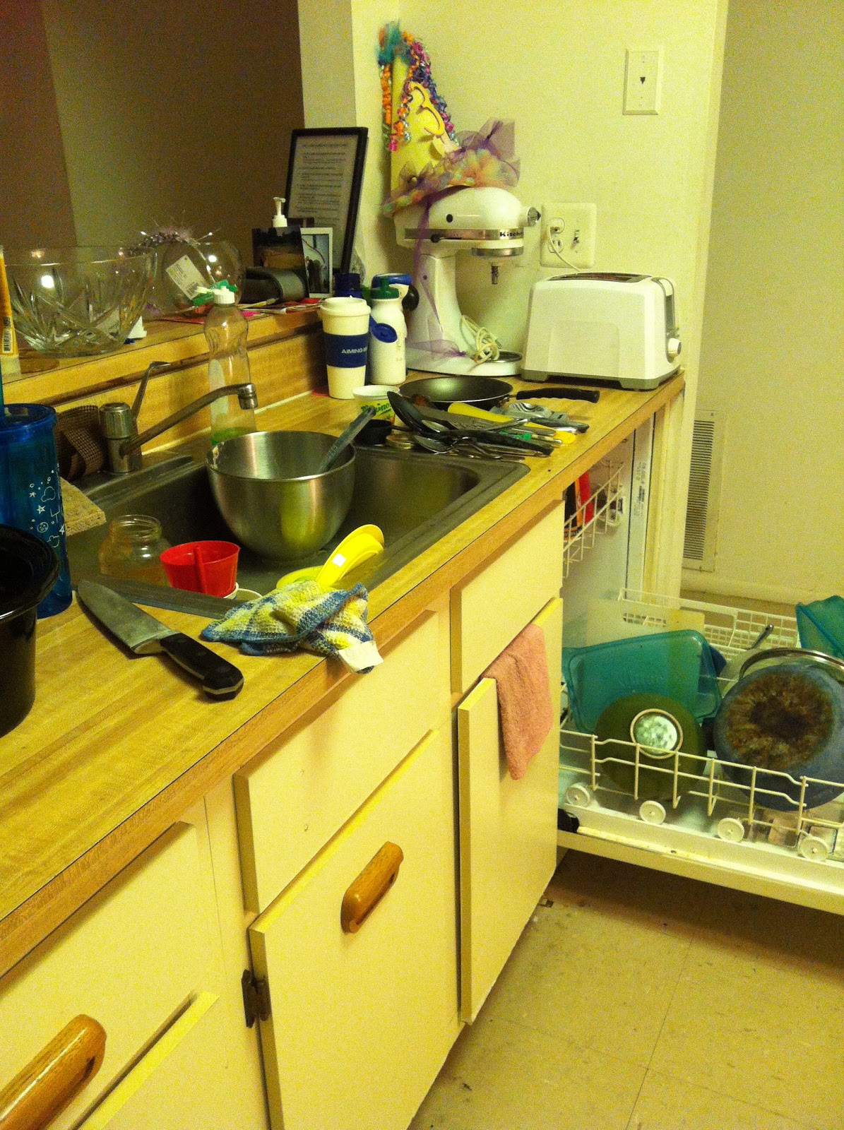 Ummm. Yeah. Mama Tazmanian Devil has struck again. Obviously I couldn’t continue on with my day while my kitchen looked this way, so I got to work.