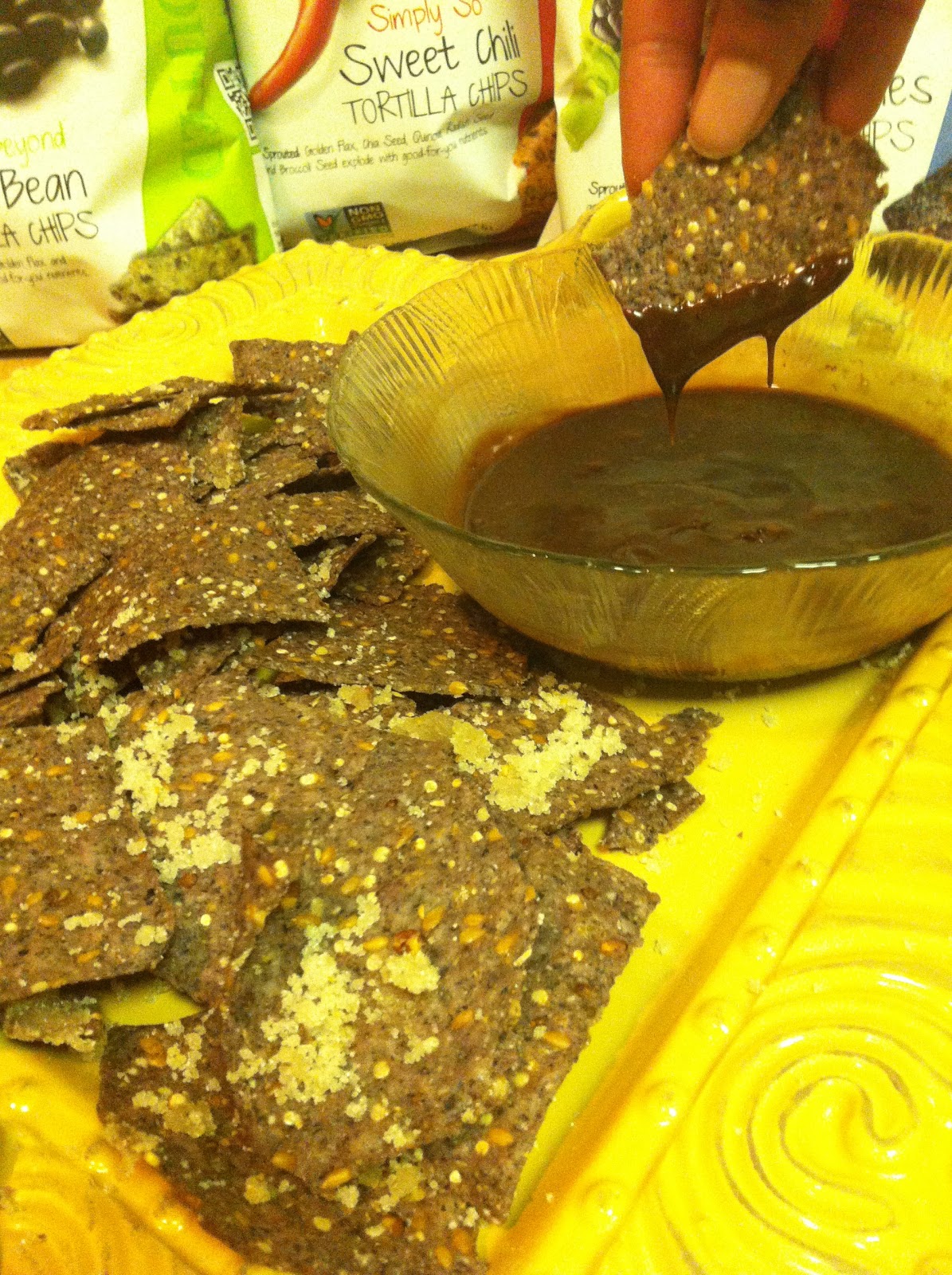I was recently sent some Way Better Snacks to try. As soon as I opened the box I noticed that they were not only were they gluten-free, but they had no GMOs and were chock full of nutrient-dense grains and seeds (they even had Chia in them! Chi-Chi-Chi Chia!). I grabbed up the Naked Blue tortillas (my all time favorite snack) and went to town. The crunch was beyond amazing and I was already thinking of so many different dips I could create to go with them.